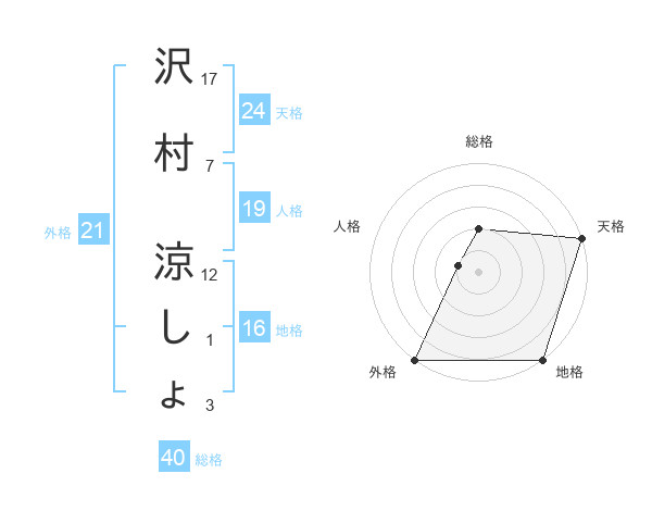 沢村 涼しょさんを姓名の画数から五運を鑑定