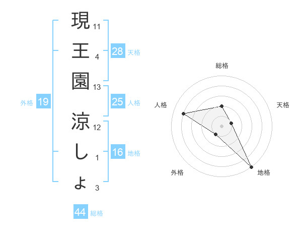 現王園 涼しょさんの地格は16画の5点!