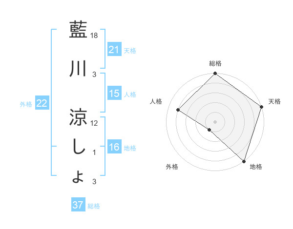 藍川 涼しょさんの総格は37画の5点!