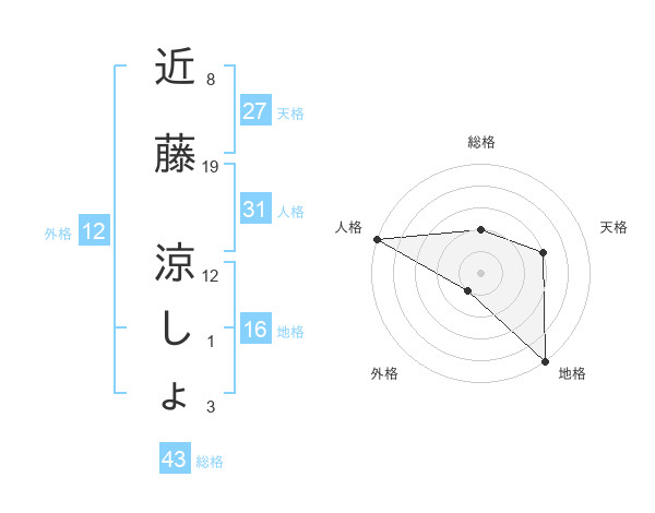 近藤 涼しょさんを姓名の画数から五運を鑑定