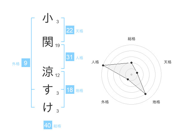 小関 涼すけさんを姓名の画数から五運を鑑定