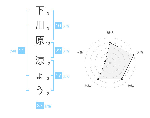 下川原 涼ょうさんを姓名の画数から五運を鑑定