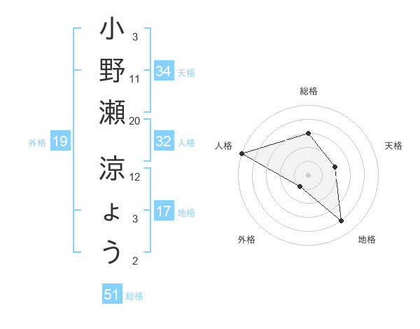 小野瀬 涼ょうさんを姓名の画数から五運を鑑定