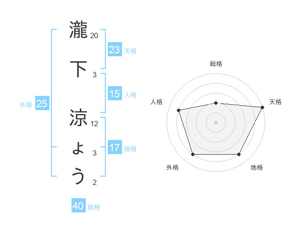 瀧下 涼ょうさんを姓名の画数から五運を鑑定