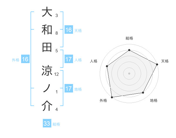 大和田 涼ノ介さんを姓名の画数から五運を鑑定