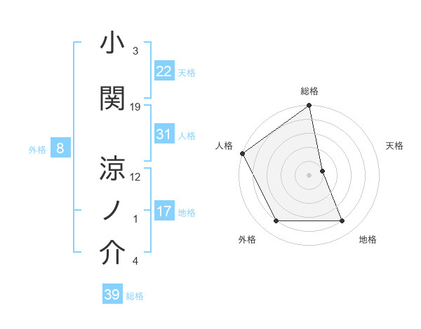 小関 涼ノ介さんを姓名の画数から五運を鑑定