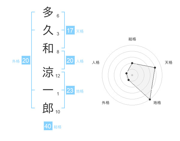 多久和 涼一郎さんを姓名の画数から五運を鑑定