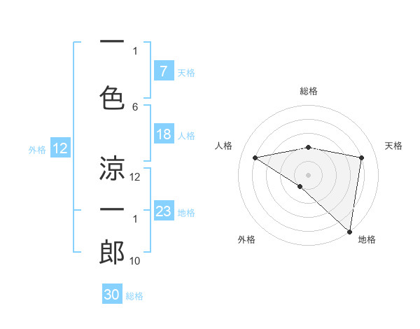 一色 涼一郎さんを姓名の画数から五運を鑑定
