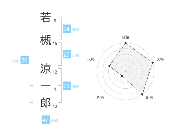 若槻 涼一郎さんの総格は47画の5点!