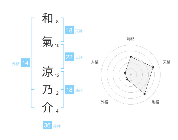 和氣 涼乃介さんの天格は18画の4点!