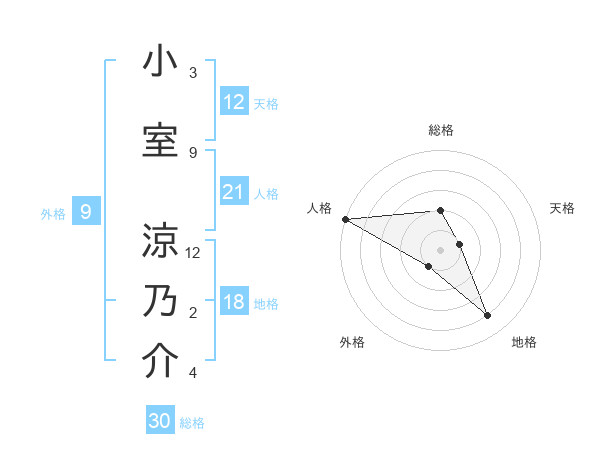 小室 涼乃介さんを姓名の画数から五運を鑑定