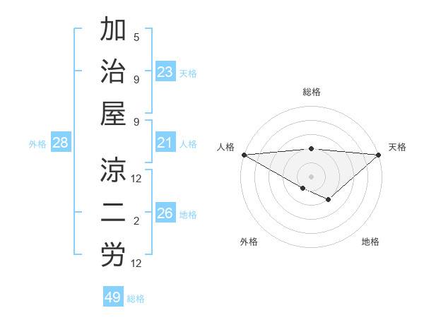 加治屋 涼二労さんの天格は23画の5点!