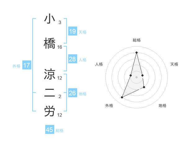 小橋 涼二労さんを姓名の画数から五運を鑑定