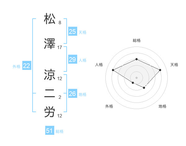 松澤 涼二労さんを姓名の画数から五運を鑑定