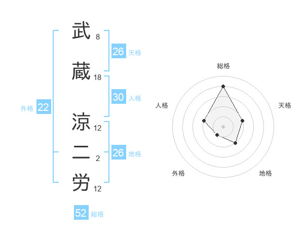 武蔵 涼二労さんを姓名の画数から五運を鑑定