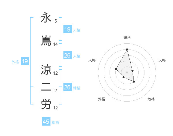 永嶌 涼二労さんの総格は45画の4点!