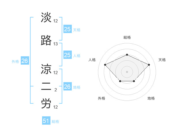 淡路 涼二労さんを姓名の画数から五運を鑑定