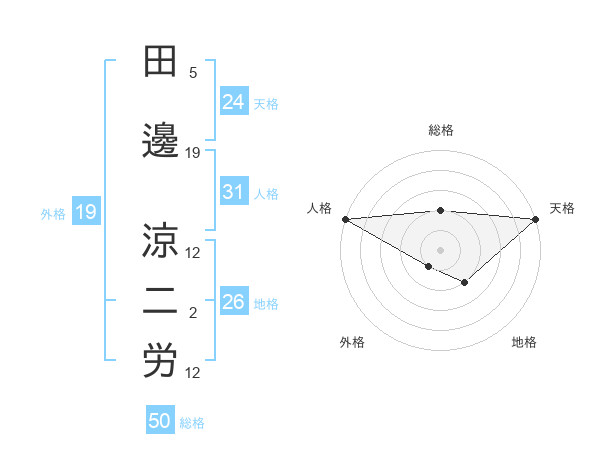 田邊 涼二労さんを姓名の画数から五運を鑑定