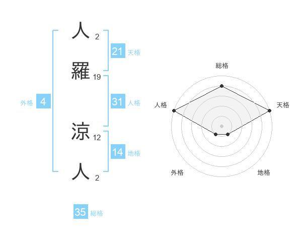 人羅 涼人さんの天格は21画の5点!