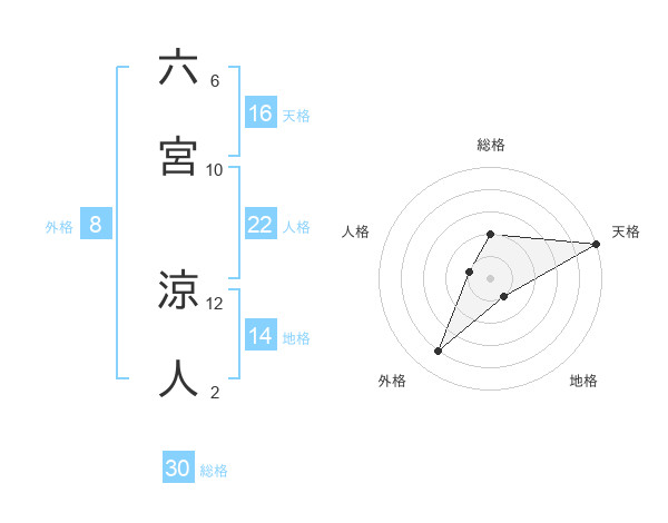 六宮 涼人さんの総格は30画の2点!