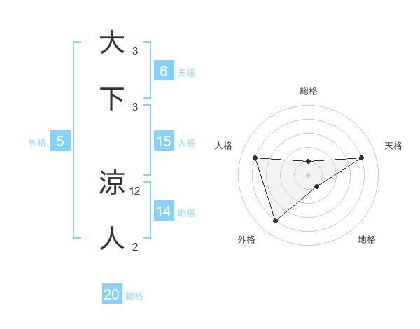 大下 涼人さんの総格は20画の1点!