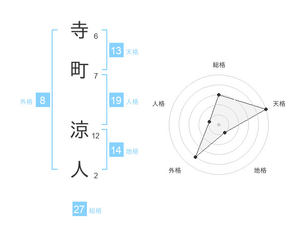 寺町 涼人さんの天格は13画の5点!