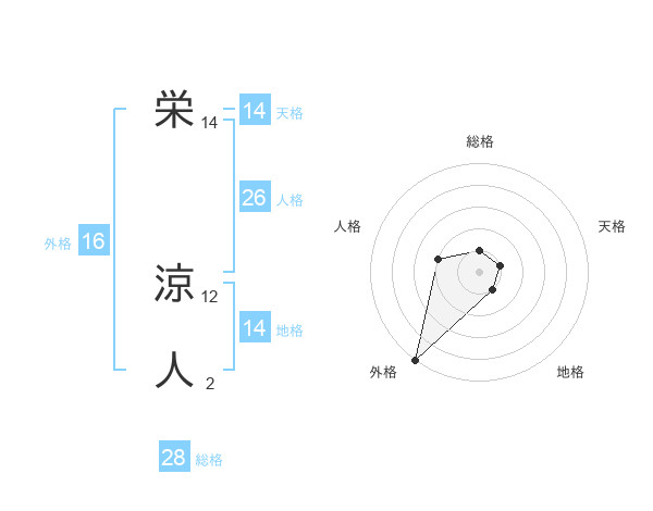 栄 涼人さんの総格は28画の1点!
