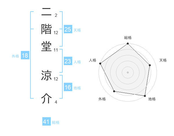 二階堂 涼介さんを姓名の画数から五運を鑑定