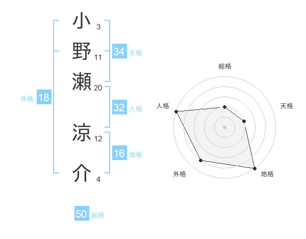 小野瀬 涼介さんを姓名の画数から五運を鑑定