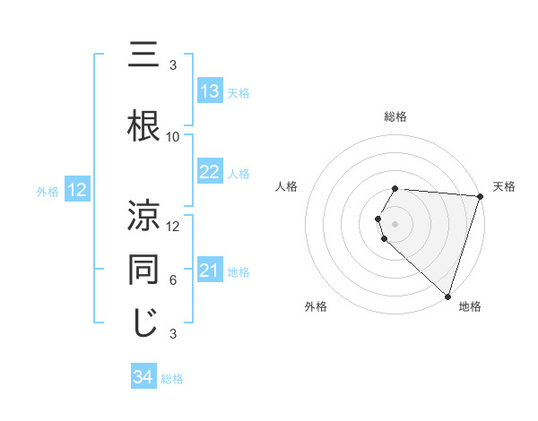 三根 涼同じさんを姓名の画数から五運を鑑定