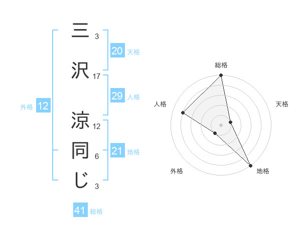 三沢 涼同じさんを姓名の画数から五運を鑑定
