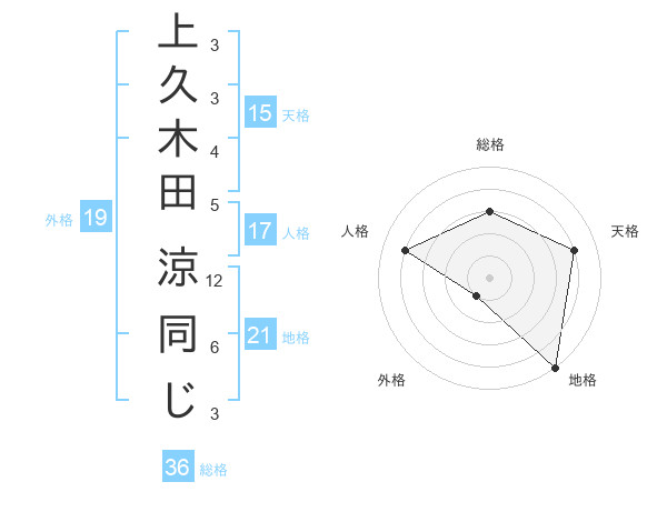 上久木田 涼同じさんの天格は15画の4点
