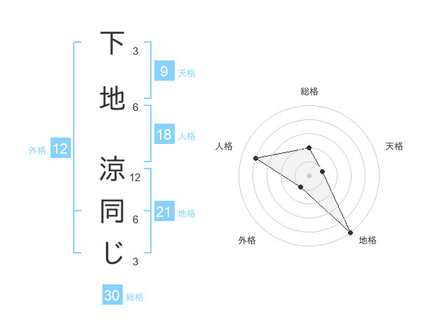 下地 涼同じさんを姓名の画数から五運を鑑定