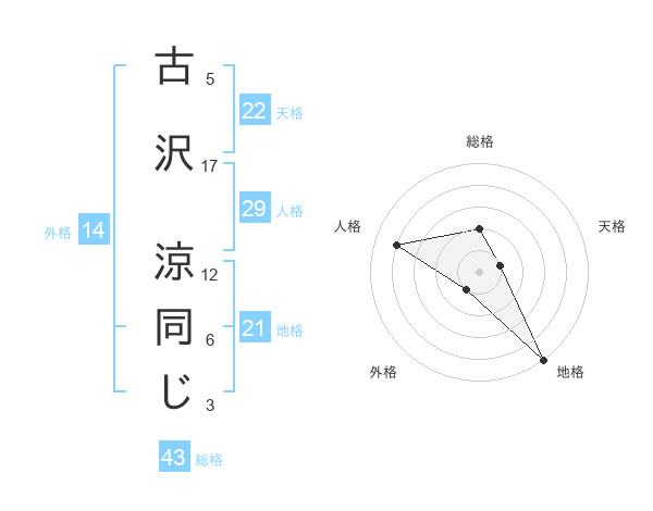 古沢 涼同じさんを姓名の画数から五運を鑑定