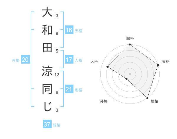 大和田 涼同じさんを姓名の画数から五運を鑑定
