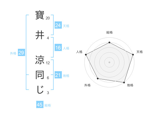 寶井 涼同じさんを姓名の画数から五運を鑑定