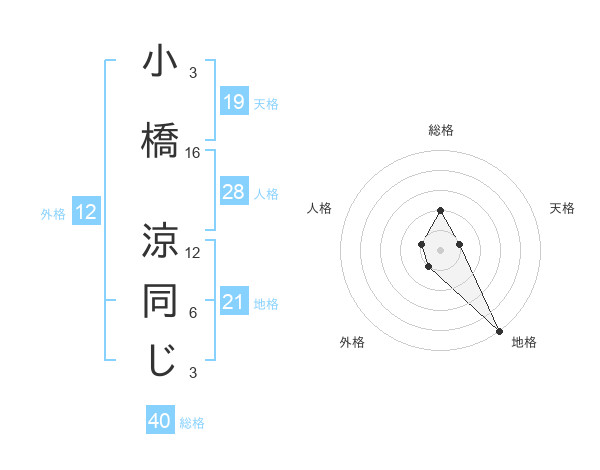 小橋 涼同じさんを姓名の画数から五運を鑑定