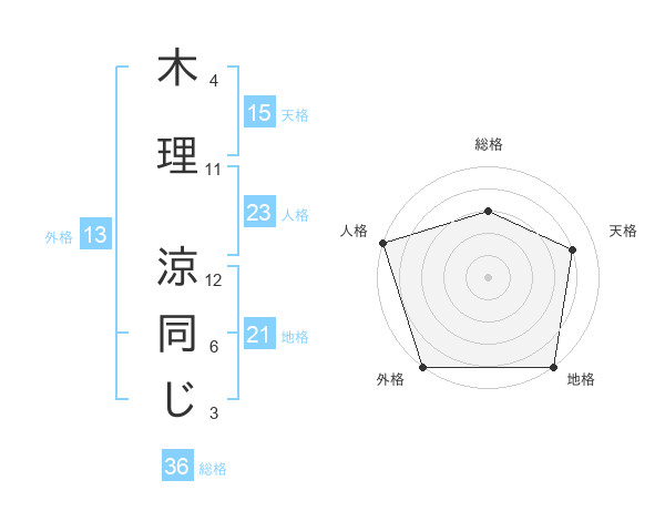 木理 涼同じさんを姓名の画数から五運を鑑定