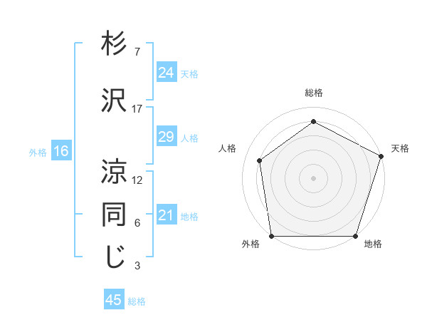 杉沢 涼同じさんを姓名の画数から五運を鑑定