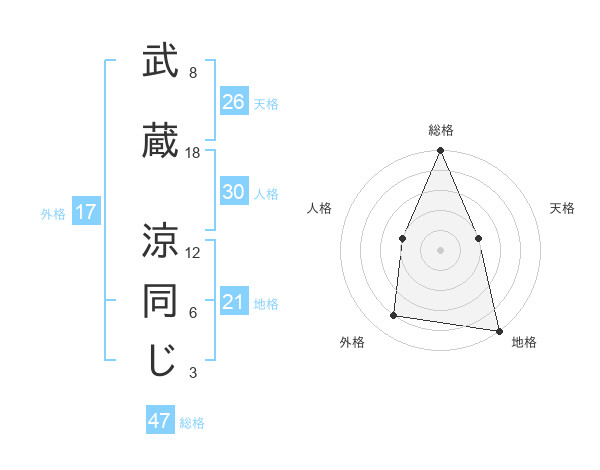 武蔵 涼同じさんを姓名の画数から五運を鑑定