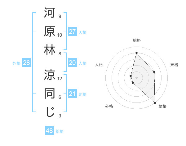 河原林 涼同じさんの総格は48画の4点!