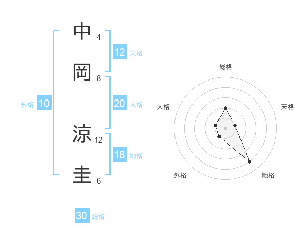 中岡 涼圭さんの総格は30画の2点!