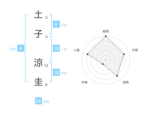 土子 涼圭さんの総格は24画の5点!