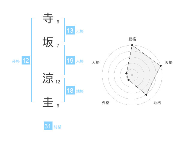 寺坂 涼圭さんの総格は31画の5点!