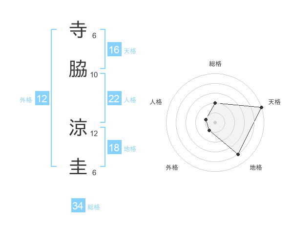 寺脇 涼圭さんの総格は34画の2点!