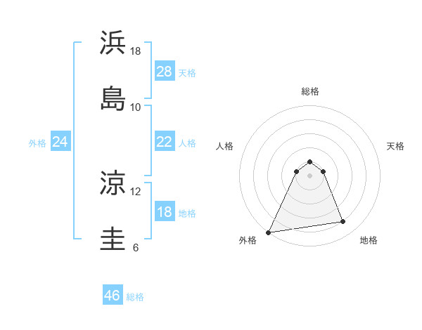浜島 涼圭さんを姓名の画数から五運を鑑定