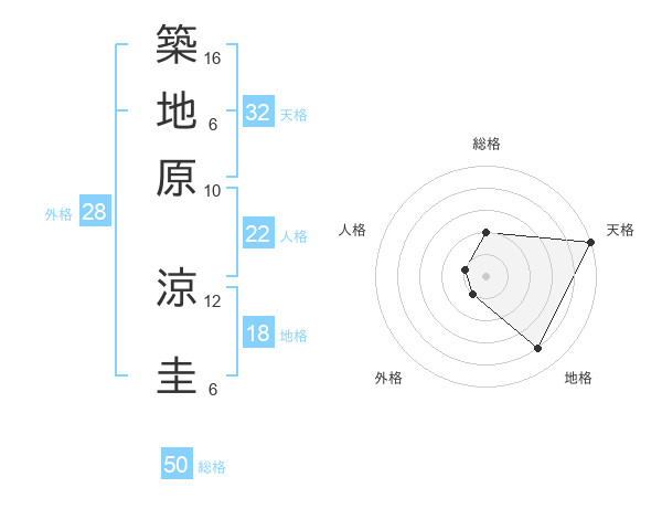 築地原 涼圭さんの総格は50画の2点!