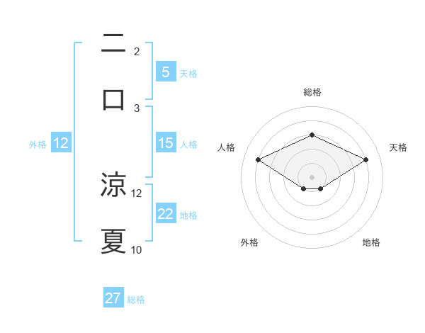 二口 涼夏さんを姓名の画数から五運を鑑定
