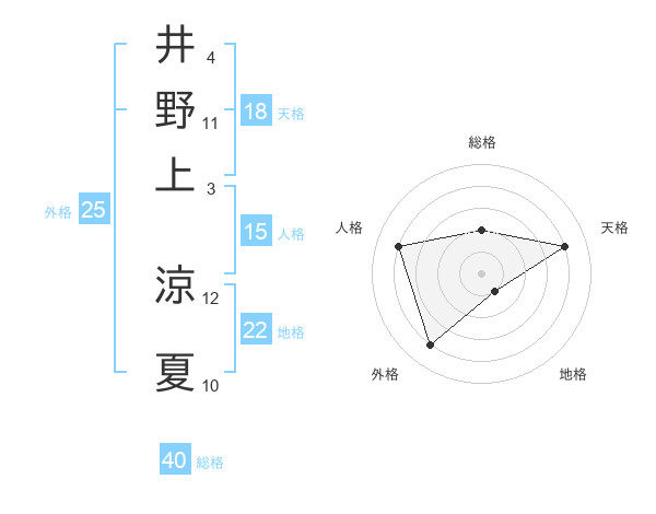 井野上 涼夏さんを姓名の画数から五運を鑑定