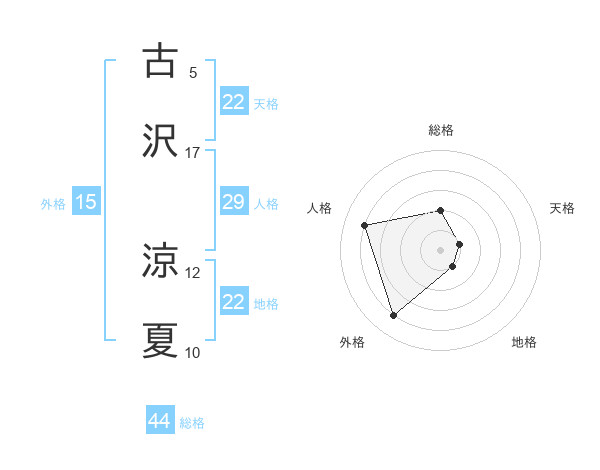 古沢 涼夏さんを姓名の画数から五運を鑑定